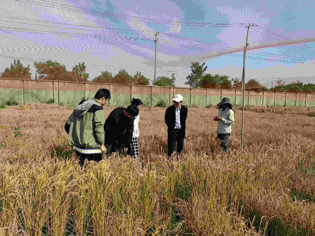 陳曉亞院士(右二)觀察水稻新種質(zhì)。受訪者供圖
