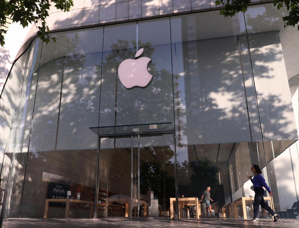 ??這是5月23日在比利時布魯塞爾拍攝的一家蘋果門店。新華社記者趙丁喆攝